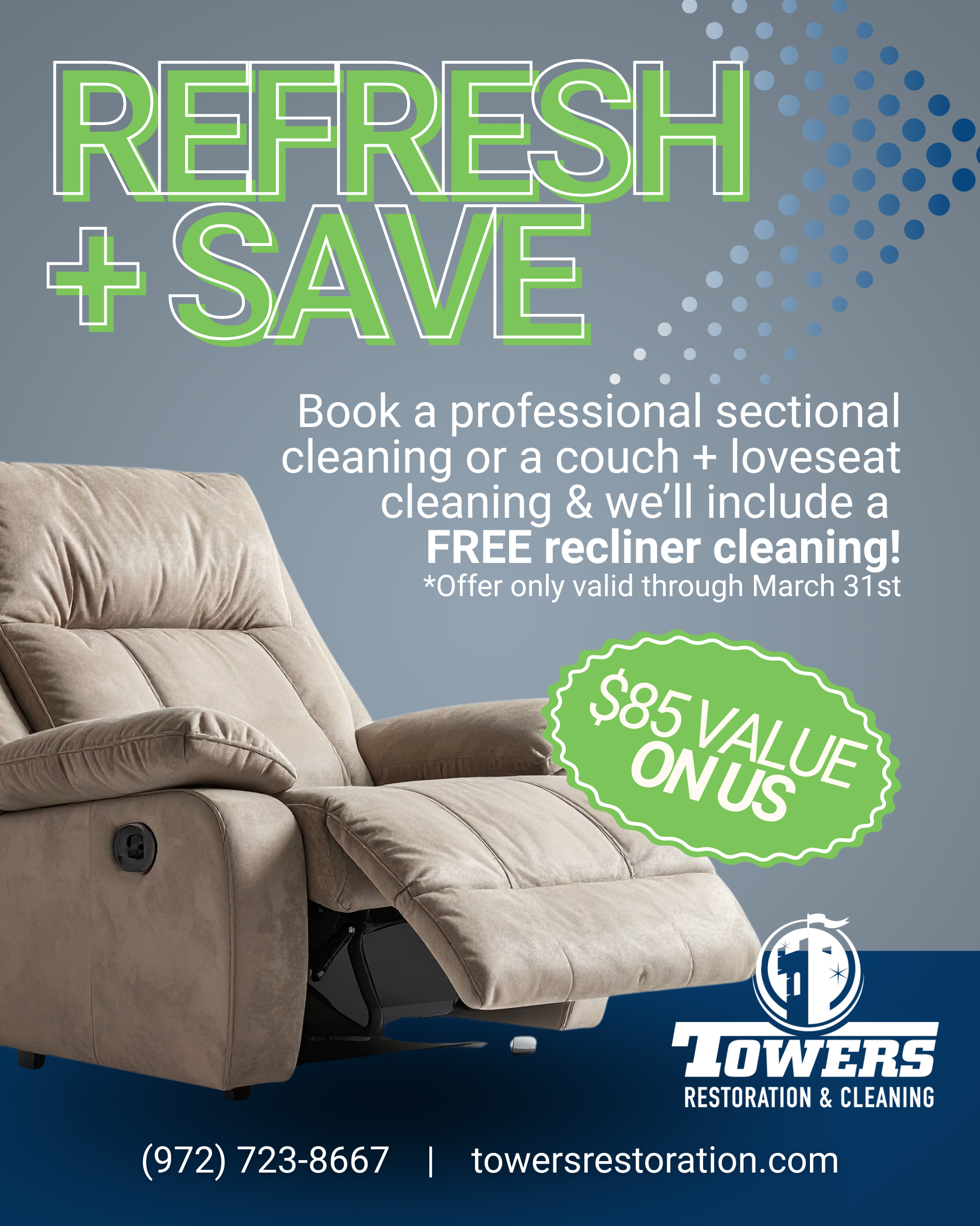 Your home deserves reliable care from trusted professionals. At Tower’s Restoration & Cleaning, we offer specials that make expert cleaning services even more accessible for homeowners throughout Midlothian and the surrounding ellis county area. Whenever a promotion is available, it will be listed here with full details and applicable terms.